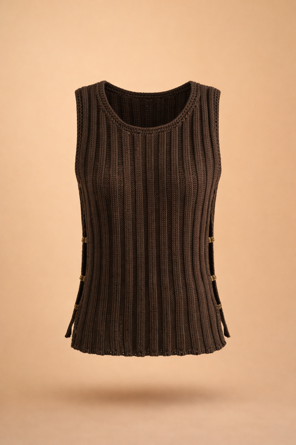 Camisa tejida en viscosa y acrílico con detalles en laterales hechos en mostacilla.