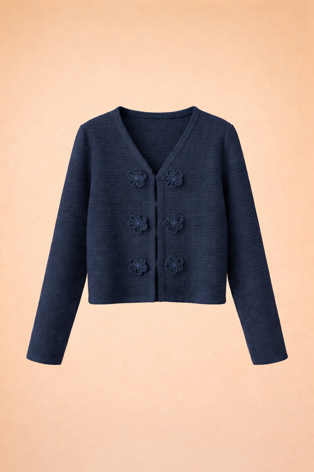 Sweater en algodon y PET reciclado con flores hechas a mano en crochet finalizadas con mostacillas.
